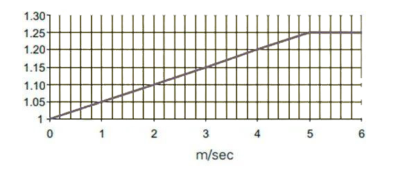 風(fēng)速修正系數(shù)曲線如下: